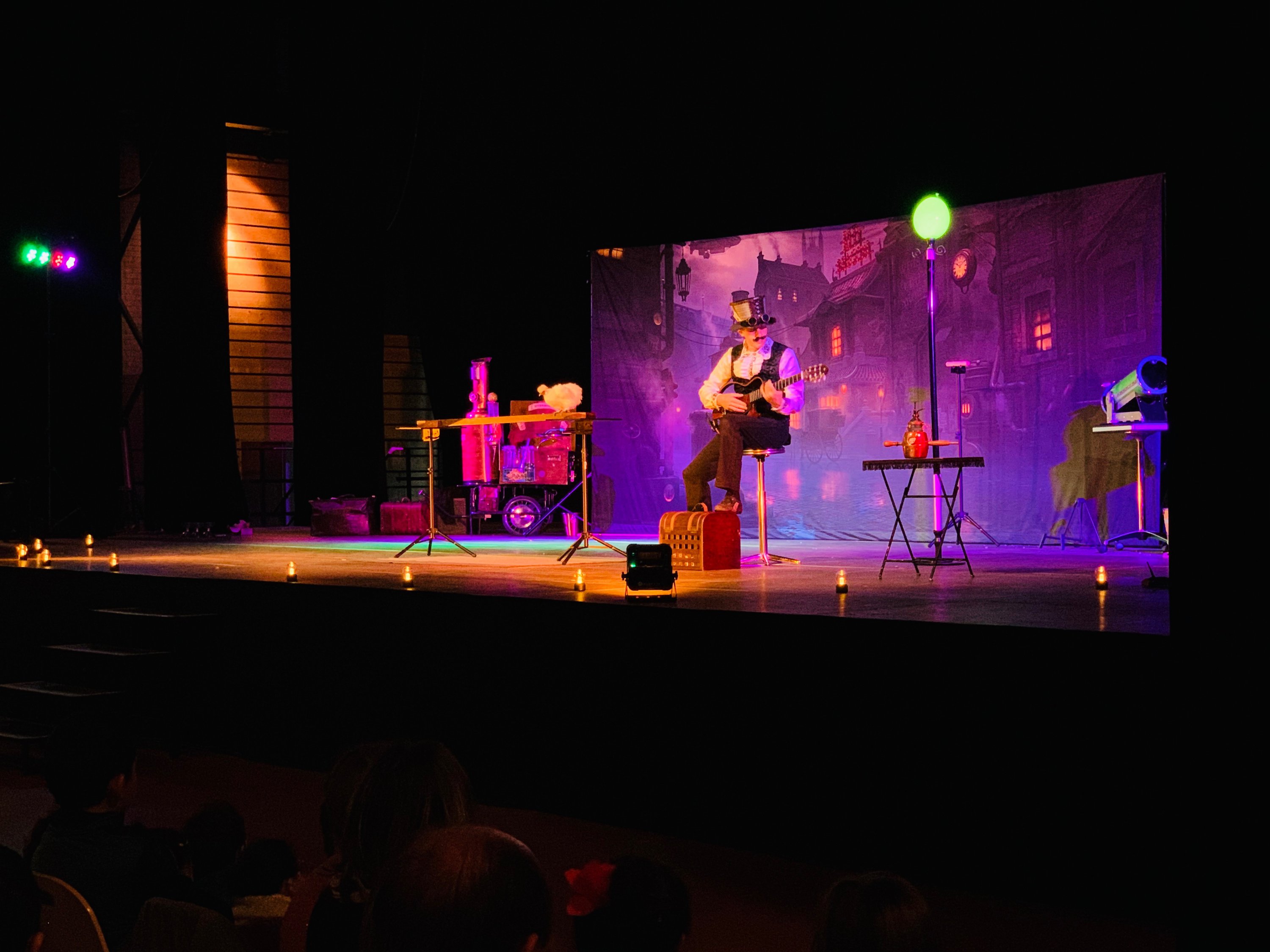 Autonomie totale : nous venons avec le décor, la sonorisation et l'éclairage, et nous adaptons au lieu, avec ou sans scène (pour les lieux sans électricité, notre matériel fonctionne sur ses propres batteries).