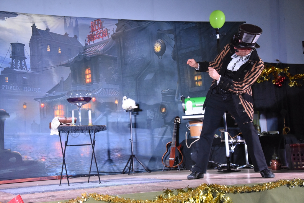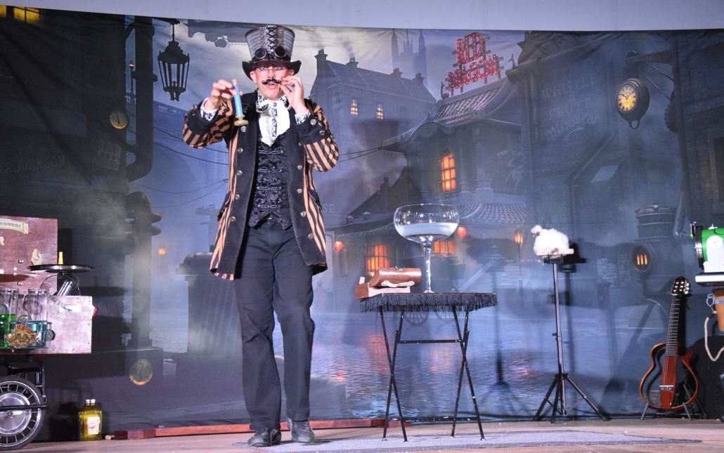 ils créent un ballet d'expériences loufoques, entrecoupées de tours dignes des plus grands cabarets,
