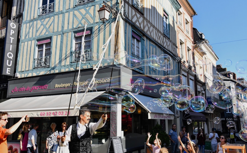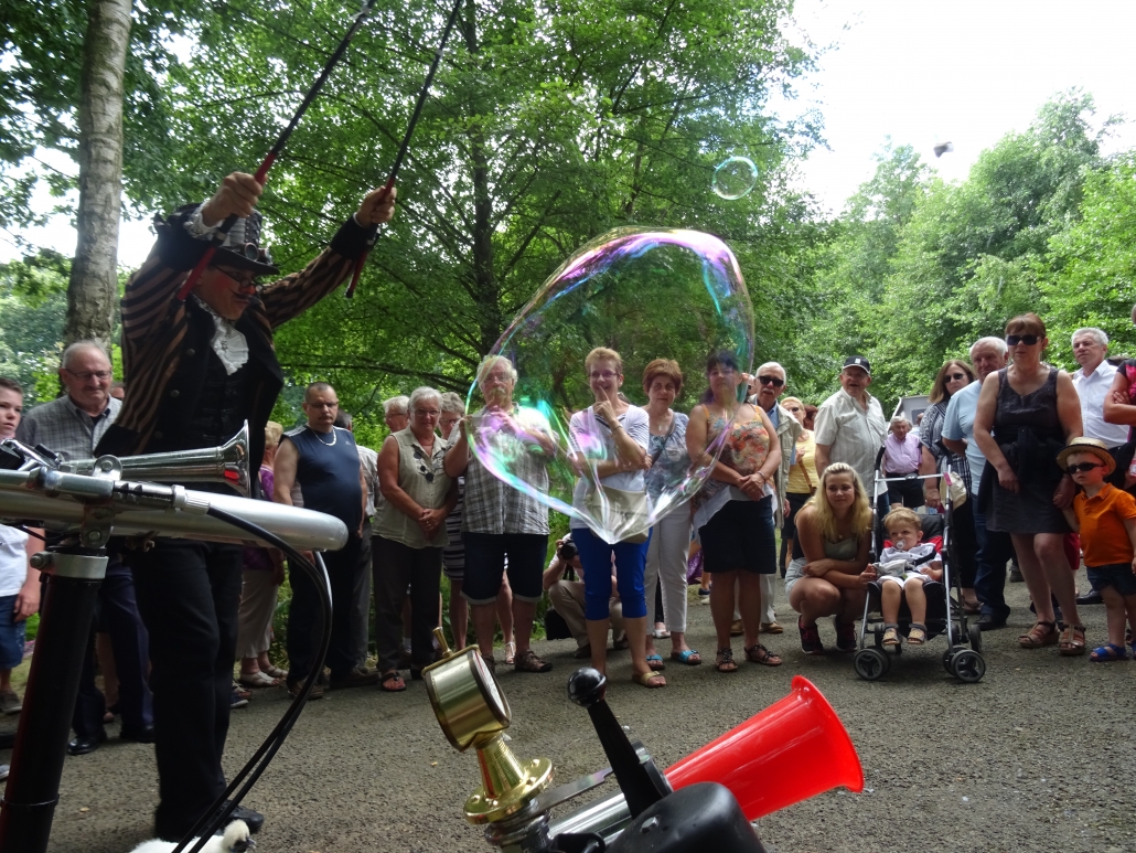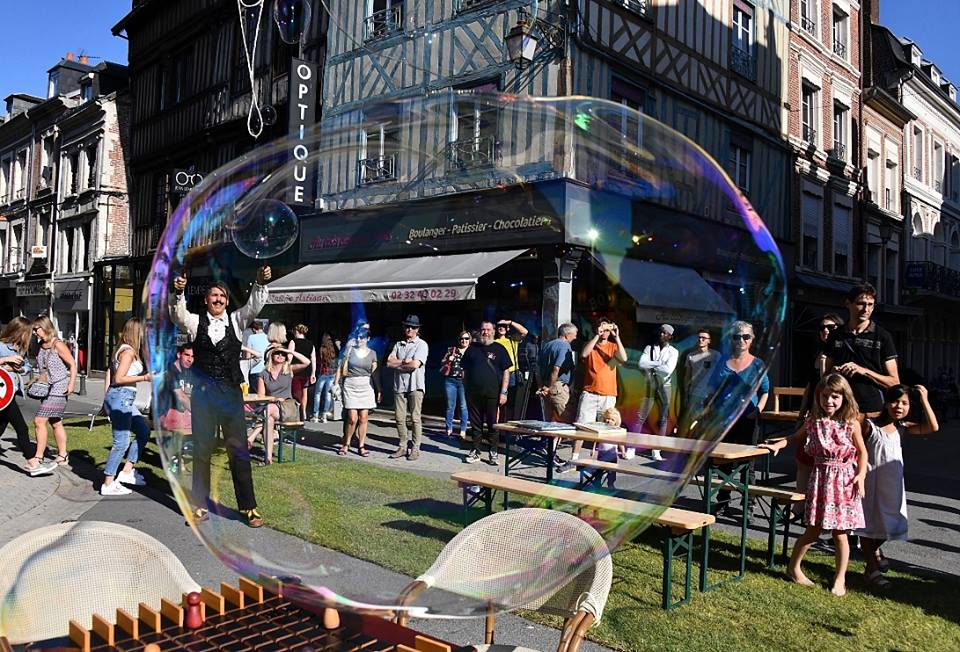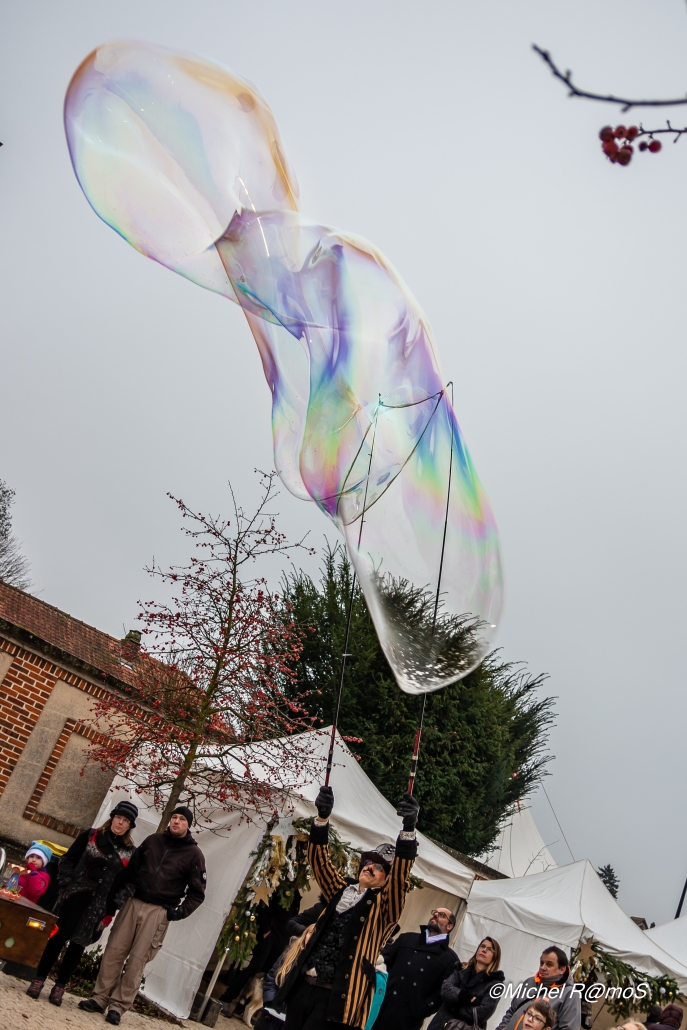 Rien n'est plus propice à l'émerveillement et à l'imaginaire que l'apparition des bulles géantes. Leur légèreté et leurs couleurs irisées ornent l’espace d’un décor éphémère et magique, transformant le lieu en un instant.