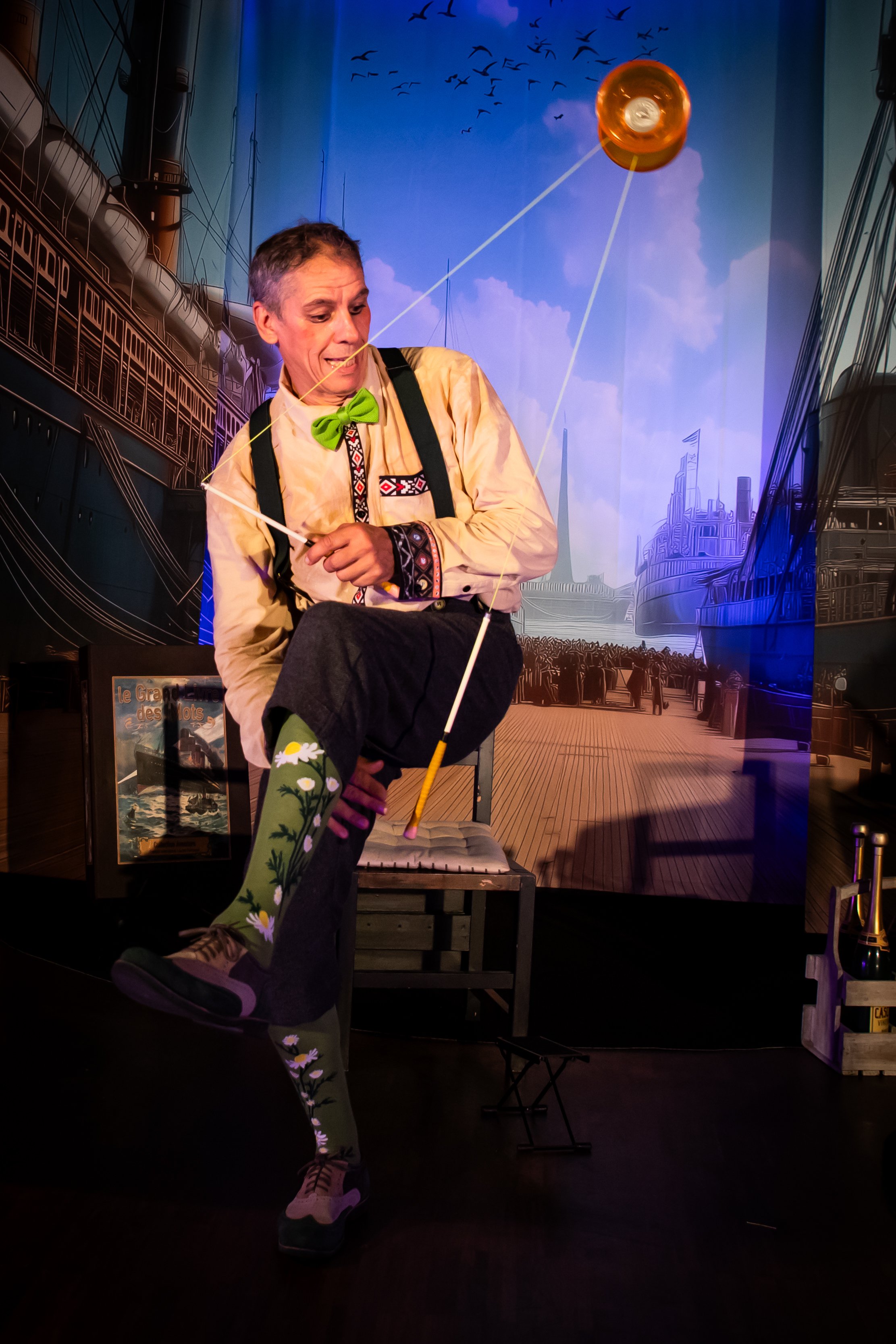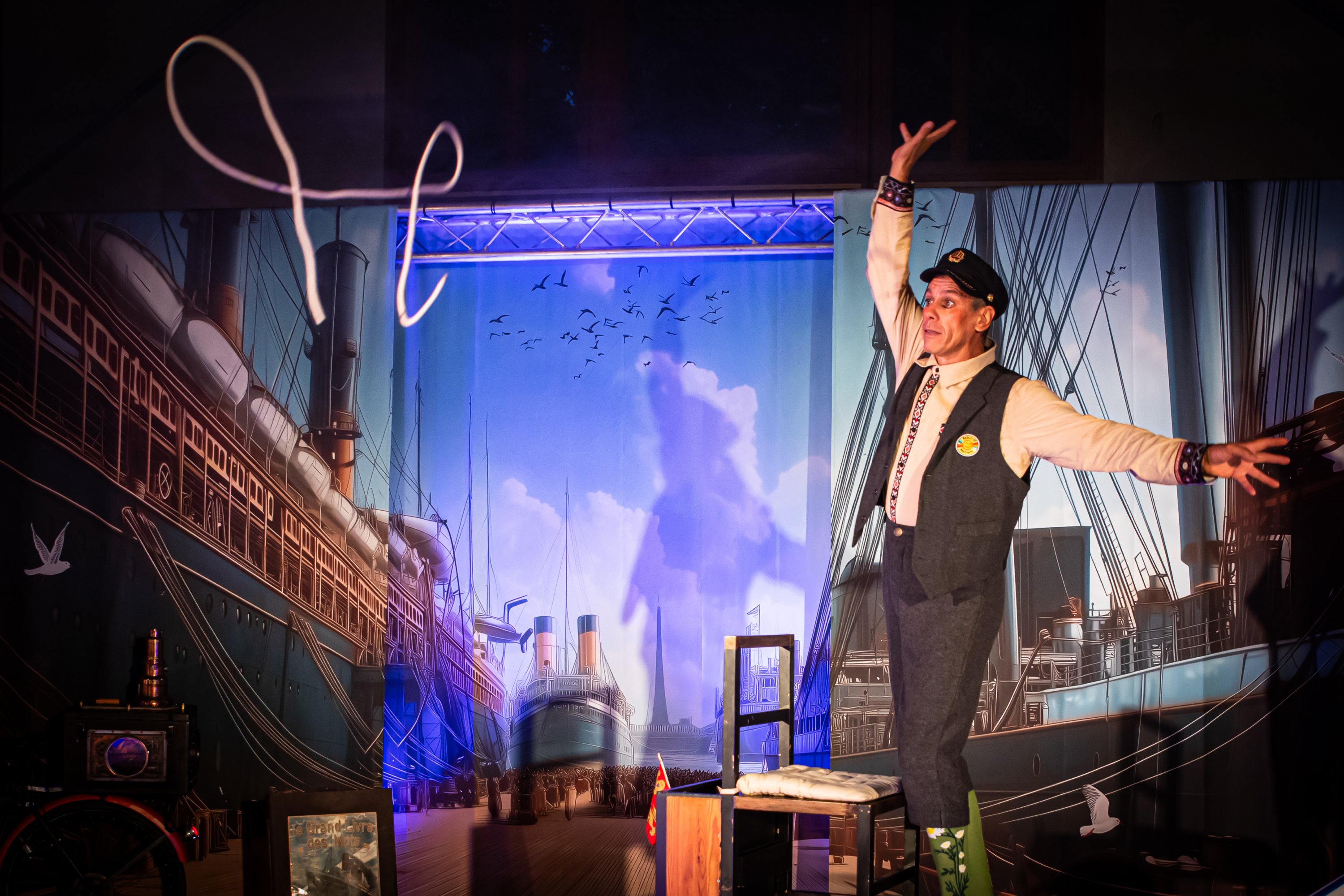 Peu à peu, Circ’umnavigation se transforme en un voyage métaphorique et sensoriel où se rencontrent théâtre, marionnettes, musique, cirque, magie et illusions du spectacle vivant. Les fils se croisent, les niveaux de lecture se superposent, et l’imaginaire dialogue avec le réel dans une danse poétique et ludique.