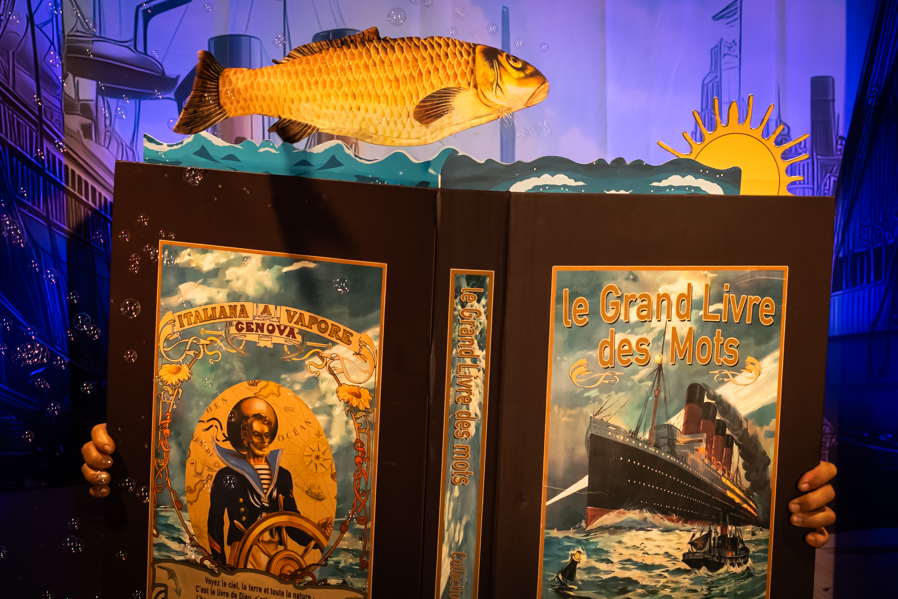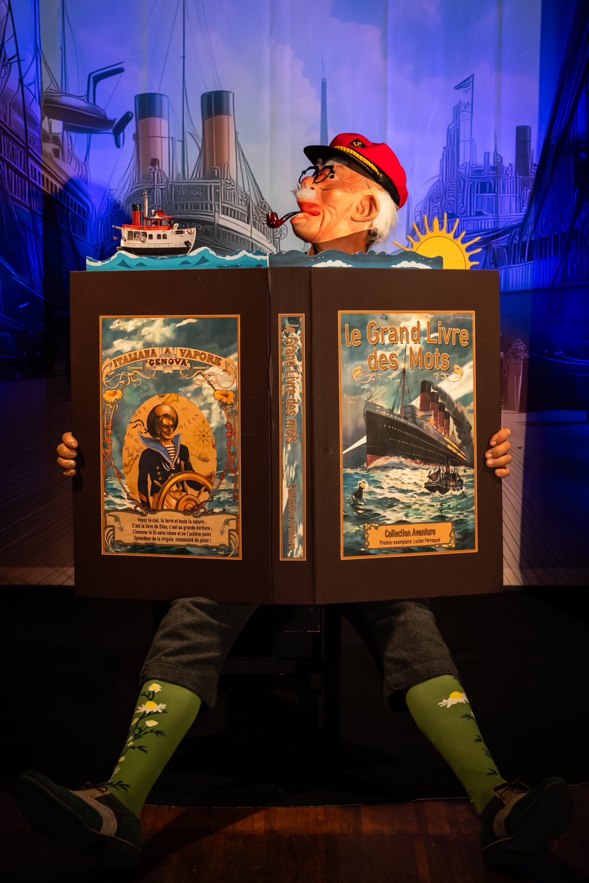 Tout commence avec un objet singulier : un livre-théâtre, à la fois carnet de voyage et petit castelet de marionnettes. Comme une bouteille à la mer, il renferme un message lancé sur l’océan de l’imaginaire. À l’intérieur, une histoire en devenir, portée par les vents de la poésie.